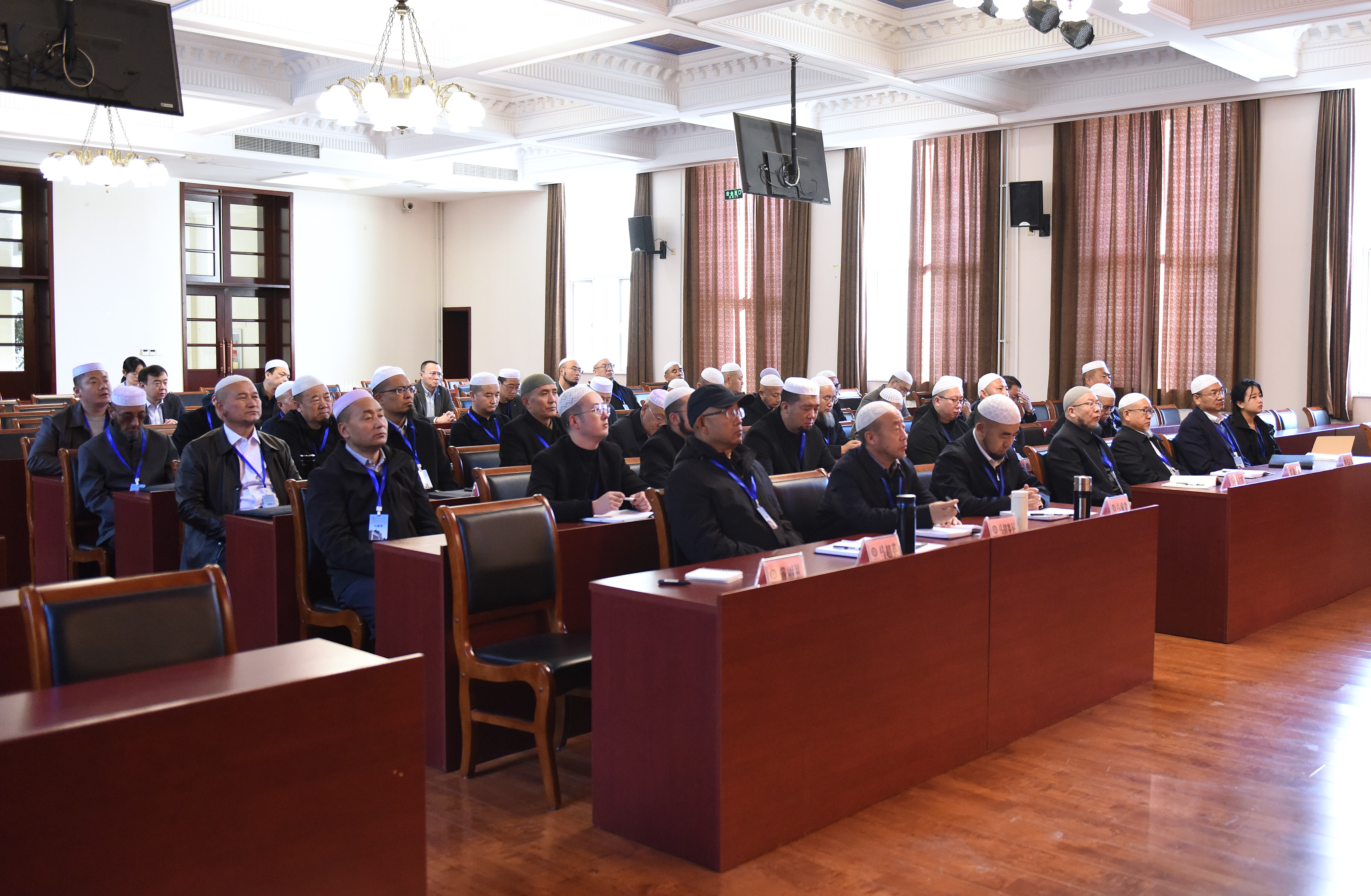 讲座由中国伊斯兰教经学院培训处负责人杨会营阿訇主持,青海省伊斯兰教协会会长马成贵阿訇、副会长马占军阿訇等中国经学院2025年中华文化体验行青海省伊斯兰教界代表人士培训班全体学员参加了讲座。