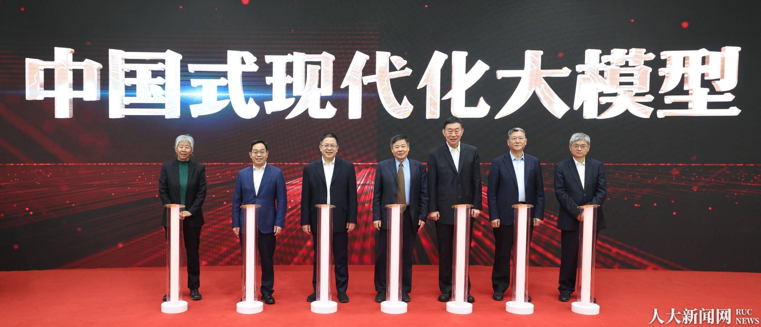 朱光耀,李培林,陈柳裕,张占斌,冯仕政,杨瑞龙,中国人民大学中国式现代化统计监测与综合评价研究团队代表、中国国民经济核算研究会常务副理事长高敏雪共同启动“中国式现代化大模型”重点工程。“中国式现代化大模型”将基于中国式现代化理论,以通用大语言模型为技术基座,构建中国式现代化监测评价数据集和专属大模型,通过浏览、查询、统计分析、智能决策等交互功能,打造中国式现代化进程的可视化展示和专业分析平台。中国人民大学统计学院院长李扬主持启动仪式。