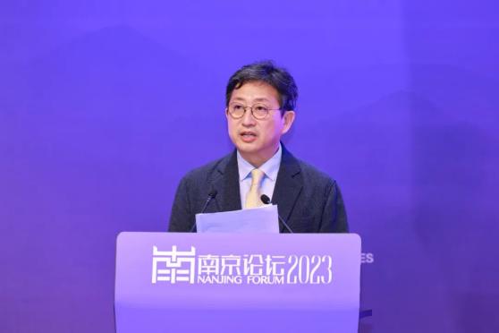 崔泰源对本届“南京论坛”的顺利召开表示祝贺,并在讲话中阐述了文明开放合作的重要性:开放合作的文明得以持续发展和繁荣,孤立隔绝的文明注定走向衰落。他表示,当今世界面临复杂挑战,应力求打破学科壁垒,加强科技文化沟通交流,达成共同见解。自2015年起,“南京论坛”已成功举办五届,成为国际交流与合作的重要平台,群英荟萃,影响广泛。当下气候变化是全世界关注的重要议题,希望能够通过“南京论坛”加强国际合作,在文化交流中汲取智慧和经验,产生创造性的解决方案。