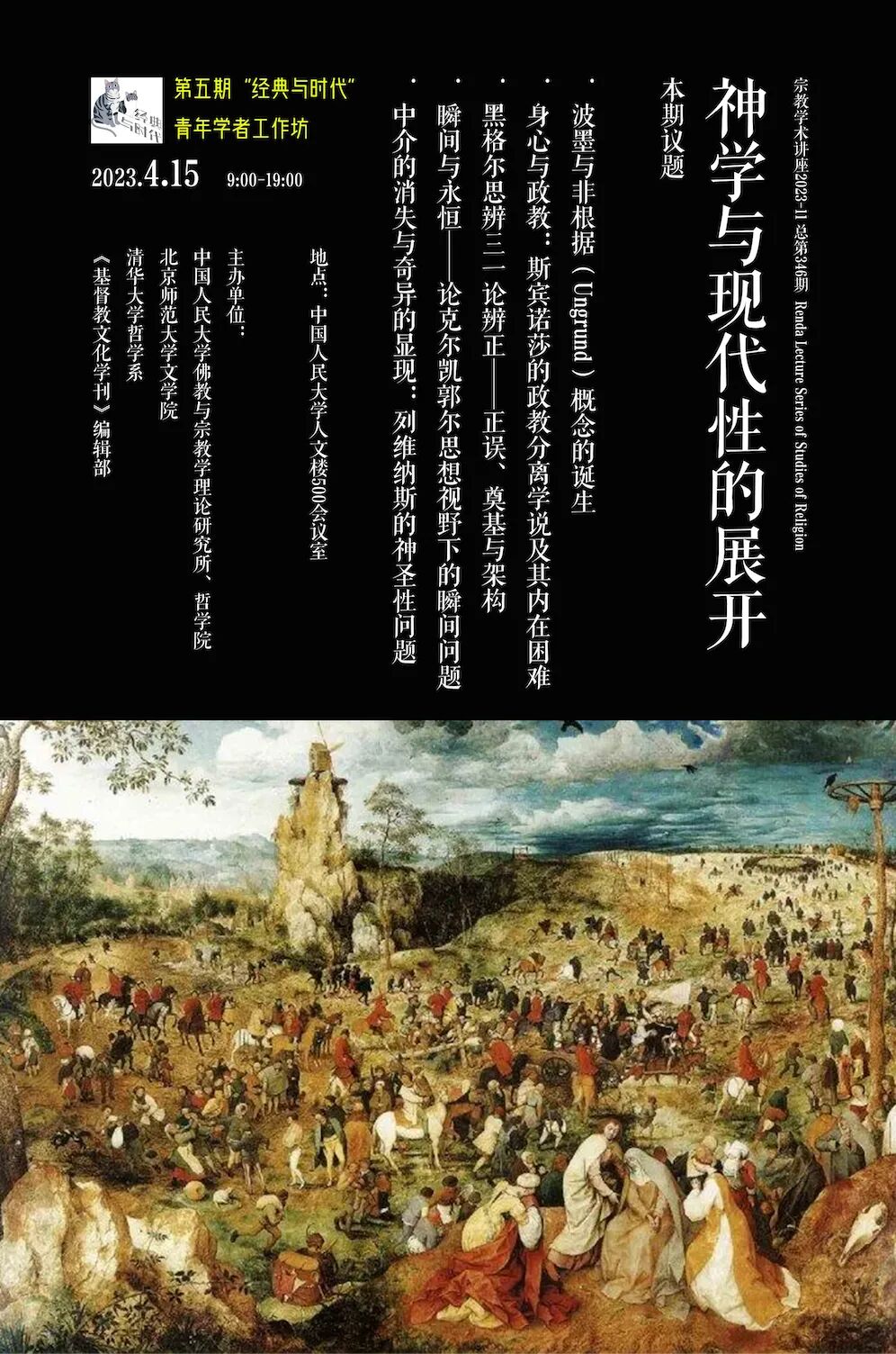 中国人民大学佛教与宗教学理论研究所 中国人民大学哲学院 北京师范大学文学院 清华大学哲学系 《基督教文化学刊》编辑部 9:00-9:05致辞人:孙帅(中国人民大学哲学院) 主持人:刘万瑚(北京师范大学哲学院) 9:05-9:35报告人:雷思温(中国人民大学哲学院) 9:35-9:50评议人:韩骁(中国社会科学院哲学研究所) 9:50-10:25自由讨论 10:25-10:45合影与茶歇 主持人:娄林(中国人民大学文学院) 10:45-11:15报告人:吴功青(中国人民大学哲学院) 11:15-11:30评议人:尹景旺(首都师范大学哲学系) 11:30-12:05自由讨论 12:05-14:00午餐(汇贤府) 主持人:陈涛(中国社科院社会学研究所) 14:00-14:30报告人:庄振华(陕西师范大学哲学学院) 14:30-14:45评议人:吕超(中国社会科学院哲学研究所) 14:45-15:20自由讨论 15:20-15:40茶歇 主持人:张靖(中国人民大学国际文化交流学院) 15:40-16:10报告人:邓定(中国社会科学院哲学研究所) 16:10-16:25评议人:朱清华(首都师范大学哲学系) 16:25-17:00自由讨论 主持人:孙帅(中国人民大学哲学院) 17:00-17:30报告人:文晗(湖南大学岳麓书院) 17:30-17:45评议人:李丙权(中国人民大学文学院) 17:45-18:20自由讨论 18:20-19:00与谈人:全体与会者 19:00-21:00晚餐(汇贤府) 庄振华(陕西师范大学哲学学院) 李丙权(中国人民大学文学院) 张靖(中国人民大学国际文化交流学院) 娄林(中国人民大学文学院) 吴功青(中国人民大学哲学院) 雷思温(中国人民大学哲学院) 孙帅(中国人民大学哲学院) 王正(中国社会科学院哲学研究所) 邓定(中国社会科学院哲学研究所) 韩骁(中国社会科学院哲学研究所) 吕超(中国社会科学院哲学研究所) 陈涛(中国社科院社会学研究所) 孟琢(北京师范大学文学院) 谢琰(北京师范大学文学院) 刘万瑚(北京师范大学哲学院) 赵金刚(清华大学哲学系) 李霖(北京大学历史系) 朱清华(首都师范大学哲学系) 尹景旺(首都师范大学哲学系) 文晗(湖南大学岳麓书院) 冯金红(北京三联书店) 吴学军 朱健铭(中国人民大学哲学院) 彭瞻(中国人民大学哲学院) 贾芸菲(中国人民大学哲学院) 段成刚(中国人民大学哲学院) 黄志鹏(中国人民大学哲学院) 潘伟伟(中国人民大学哲学院)